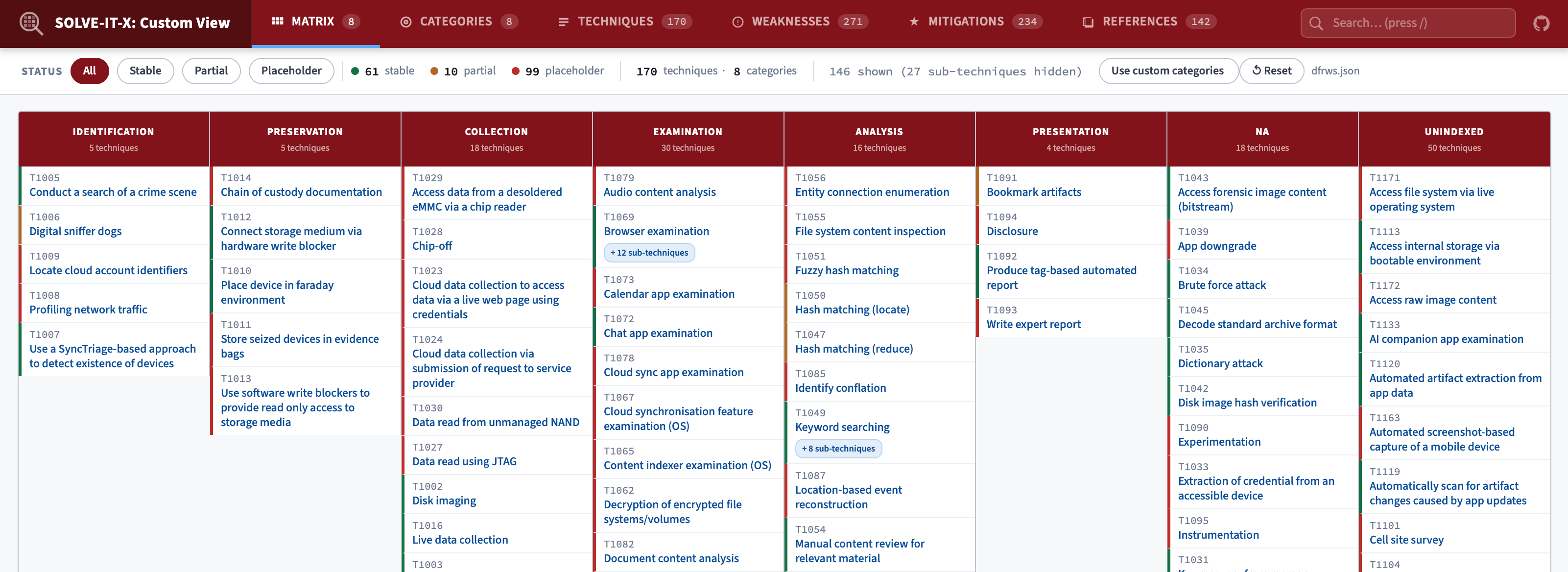 To complement the SOLVE-IT explorer we can also now offer the ‘custom view’ web app. This is useful for anyone who wants to change the way that the SOLVE-IT techniques are organised/categorised.